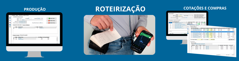 Gestão da Produção com apontamento de tempo e insumo em cada etapa, controle de produtividade da equipe, retrabalhos e custos de produção.