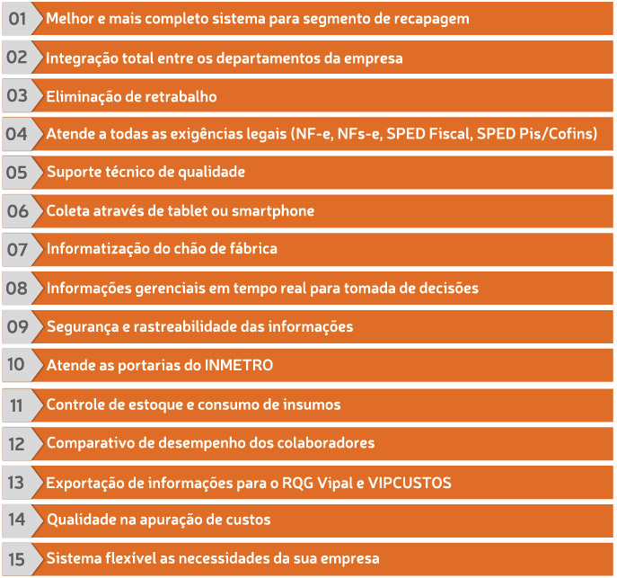 Desta forma não existem retrabalhos. Um sistema moderno que maximiza os resultados através da transformação dos dados em informações, gerando estratégias de gestão. O sistema Vulcano atende de forma plena os novos desafios do segmnento de recapagem de Pneus. Conheça e surpreenda-se.